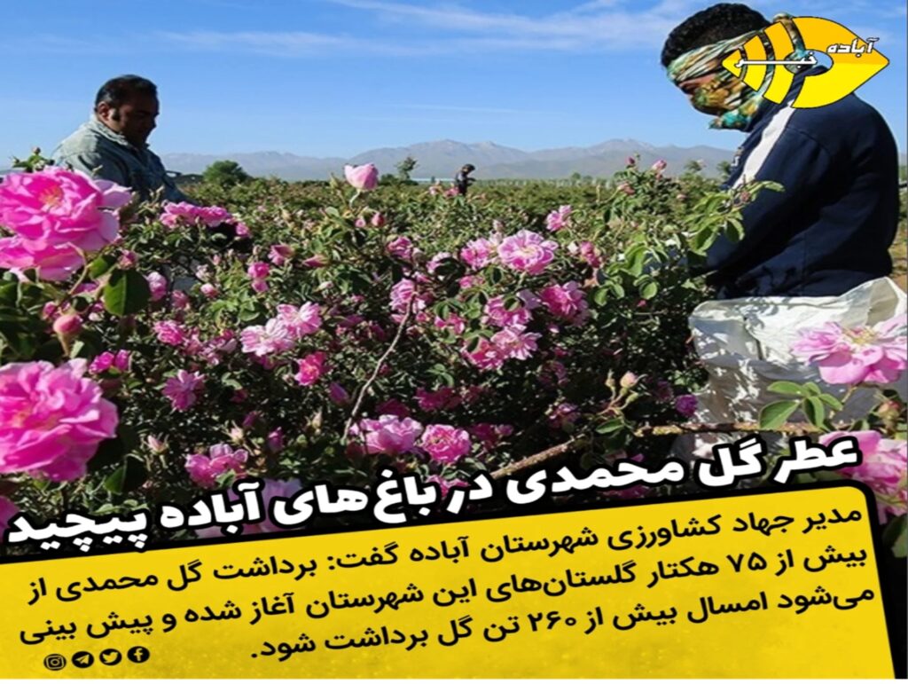 مدیر جهاد کشاورزی شهرستان آباده گفت: برداشت گل محمدی از بیش از ۷۵ هکتار گلستانهای این شهرستان آغاز شده و پیش بینی میشود امسال بیش از ۲۶۰ تن گل برداشت شود.